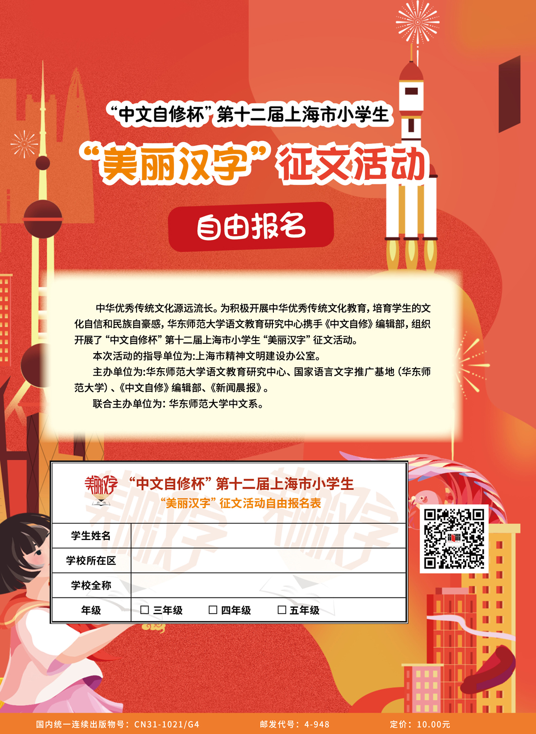 第十二届上海市小学生“美丽汉字”征文活动【自由报名通道报名表】